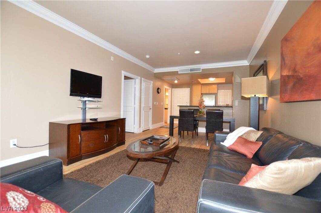 FULLY FURNISHED MERIDIAN LUXURY CONDO w/STRIP View, 1bdr/1bath Condo. Just 1-1/2 blocks to the heart of the strip. Unit is fully equipped with stainless steel appliances also featuring crown molding, Stone and laminate flooring, granite counter tops etc.