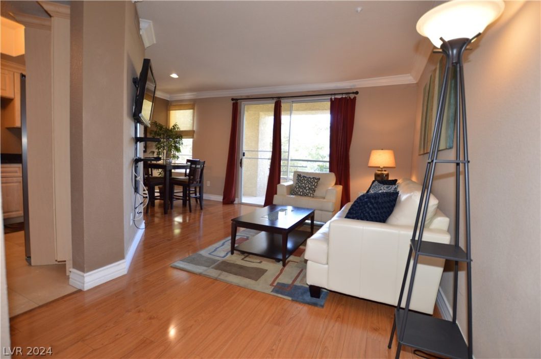 FULLY FURNISHED MERIDIAN LUXURY 1bdr/1bath Condo, Community is located 1-1/2 blocks to the heart of the strip. Unit is fully equipped with stainless steel appliances also featuring crown molding, Stone and Wood flooring, granite counter tops, covered patio, additional storage available in patio area etc.