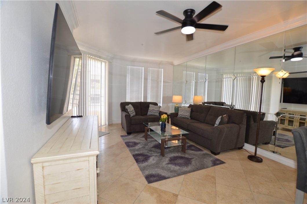 FULLY FURNISHED MERIDIAN LUXURY 2bdr/2bath condo . Utilities and Internet included in rental price. Condo Community is located 1-1/2 blocks to the heart of the strip. Unit is fully equipped with NEW stainless steel appliances also featuring crown molding, Stone and Wood flooring, granite counter tops, covered patio, and more.